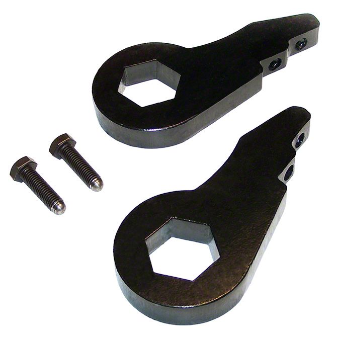 Front Torsion Bar. SuperLift’s heavy-duty forged steel construction torsion keys are 25% stronger than their OEM counterparts. Regular torsion bars keys feature hex-cut holes that mate to the rear ends of the torsion bars. SuperLift’s torsion keys, on the other hand, are indexed differently to increase bar rotation and lift, and are designed to grab the flat hex portion of the torsion bar for a more precise, tighter fit.