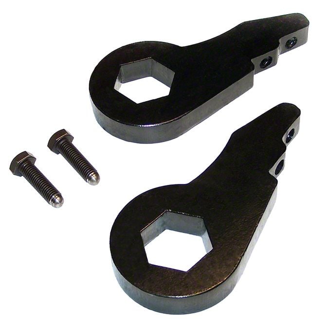 Front Torsion Bar. SuperLift’s heavy-duty forged steel construction torsion keys are 25% stronger than their OEM counterparts. Regular torsion bars keys feature hex-cut holes that mate to the rear ends of the torsion bars. SuperLift’s torsion keys, on the other hand, are indexed differently to increase bar rotation and lift, and are designed to grab the flat hex portion of the torsion bar for a more precise, tighter fit.