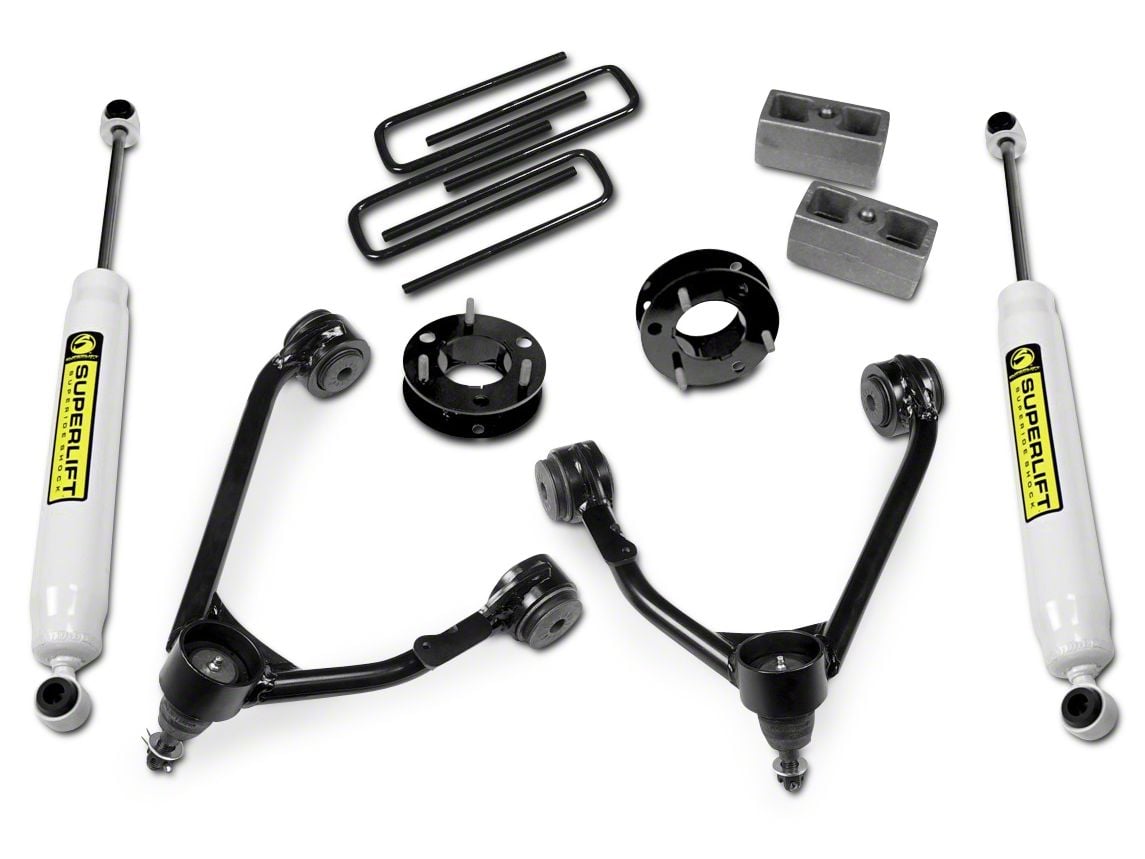 Application. The SuperLift 3.5 in. Upper Control Arm Leveling Kit with Superide Shocks is measured to fit 2007-2018 2WD Chevrolet Silverados equipped with Cast Steel, Cast Aluminum or Stamped Steel Control Arms. Please select your proper fitment from the options above.