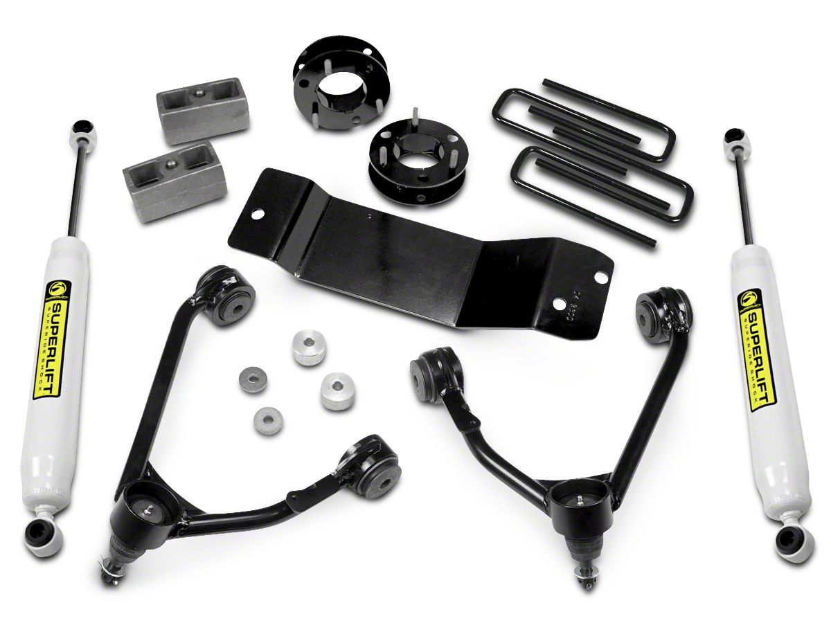 Application. The SuperLift 3.5 in. Upper Control Arm Leveling Kit with Superide Shocks is measured to fit 2007-2018 4WD Chevrolet Silverados equipped with Cast Steel, Cast Aluminum or Stamped Steel Control Arms. Please select your proper fitment from the options above.