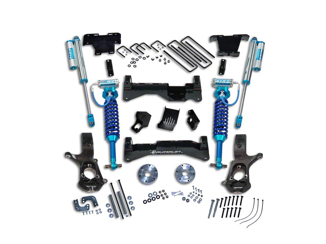 Full-House Kit. SuperLift’s 8 in. Suspension Lift Kit contains everything needed to transform your truck into the ultimate off-roader. Once you purchase it, you don’t need to worry about buying additional parts. Apart from the King Coil-Overs & Shocks, this kit contains CNC-machined and extended ductile iron steering knuckles, and top mount strut spacers. These parts guarantee optimal performance.