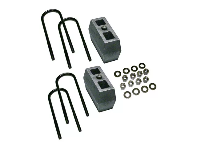 Durable and Built for Heavy Loads. Constructed from heavy-duty steel, these lift blocks provide superior strength and durability. The included U-bolts and hardware ensure a secure and long-lasting installation, while the powder-coated finish protects against rust and corrosion.