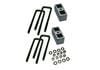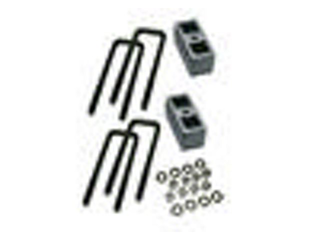 Construction and Appearance. This lift kit features a glossy black finish and is constructed from durable cast materials, ensuring long-lasting strength and reliability. It is compatible with both stock blocks and aftermarket leveling kits, making it versatile for various setups. The kit includes lift blocks, U-bolts, and all necessary installation hardware.