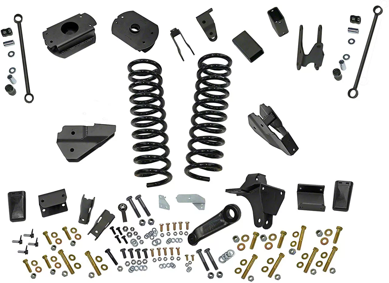 Details. The Front Lift includes: 3.50-inch coil springs, radius arm drop brackets, track bar bracket, pitman arm, sway bar correction, bump stops, brake line brackets and shock extensions. The Rear Lift includes: 2-inch coil springs, shock extensions, track bar relocation bracket, sway bar links and all required hardware.