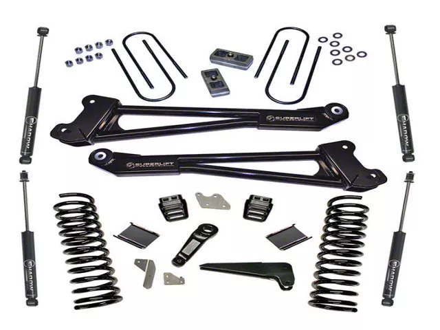 Application. This SuperLift 4-Inch Radius Arm Suspension Lift Kit with SuperLift Shocks was designed to fit all 2013-2018 4WD 6.7L RAM 3500 w/o Air Ride models.