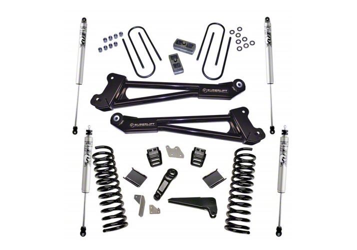 Application. The SuperLift 4-Inch Suspension Lift Kit with Replacement Radius Arms and FOX Shocks fits 2013-2018 4-Wheel Drive 6.7L RAM 3500 models without Air Ride.