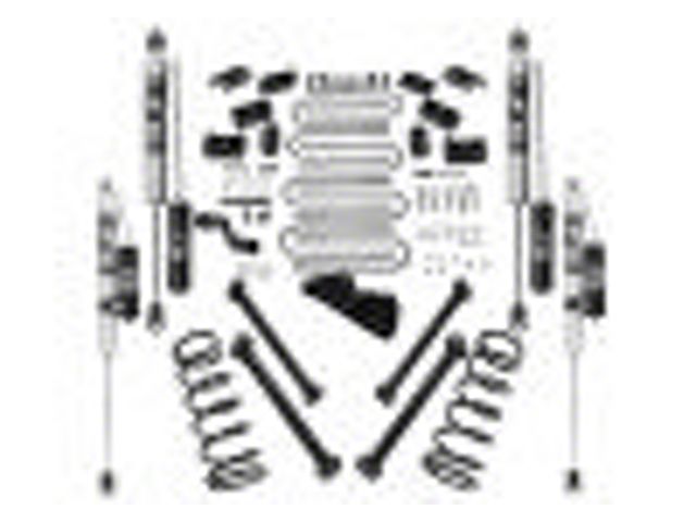 Construction and Features. Featuring a glossy black and brushed metal finish, this suspension lift kit is crafted from high-quality materials for durability and strength. It includes a variety of components such as U-bolts, lift blocks, and a track bar bracket, all made to withstand tough off-road conditions. Made in the USA, this kit guarantees reliable performance and a perfect fit for your vehicle.