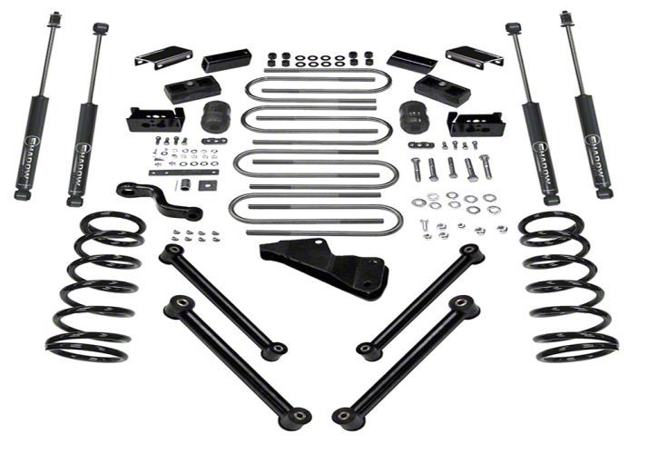 Complete Suspension Lift. The SuperLift 6-Inch Suspension Lift Kit with Superlift Shocks is a complete suspension lift for your RAM 3500, raising your pickup by 6-inches for a tough, aggressive stance. This kit includes everything necessary for installation, including progressive lift coil springs, extended tubular control arms, rear lift blocks, various drop brackets, and all associated hardware.