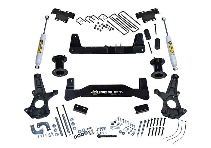 SuperLift Shocks. This SuperLift 6-Inch Suspension Lift Kit comes with front and rear SuperLift shocks. These SuperLift shocks let you experience a smoother off-road ride since they help absorb and dampen the impacts caused by the bumpy trail.