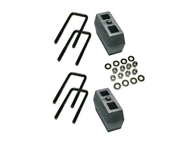 Superior Build. Each SuperLift Rear Block Kit part is engineered from premium materials that can withstand years of abuse. The blocks are designed to be tapered to deal with driveshaft angle, alignment, and length. They are made from heavy-duty Class 30 Gray Iron which is the same material vehicle manufacturers use for their spacer blocks. U-bolts feature an anti-corrosive low-alloy, high-strength steel material finished in zinc or e-coat. Phosphate-coated flat washers are heat-treated, extra thick, and feature aircraft-type nylon-inserted locking U-bolt nuts.