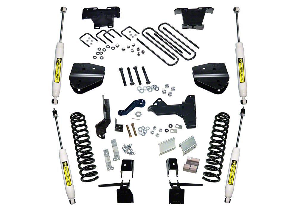 Enhances On- and Off-Road Driving Experience. For a Ford Super Duty that lives up to its name, get this SuperLift 6-Inch Suspension Lift Kit with Superide Shocks. The 6-inch increase in ground clearance alone has multiple benefits. It smoothens ride quality, especially on rougher terrain, and also allows you to install larger tires sized up to 40 x 13.50 inches. Larger tires help give your truck an imposing, aggressive look and also helps with off-road maneuverability. Other notable components in this lift kit include a pitman arm for proper steering and the track bar bracket for enhanced balance.