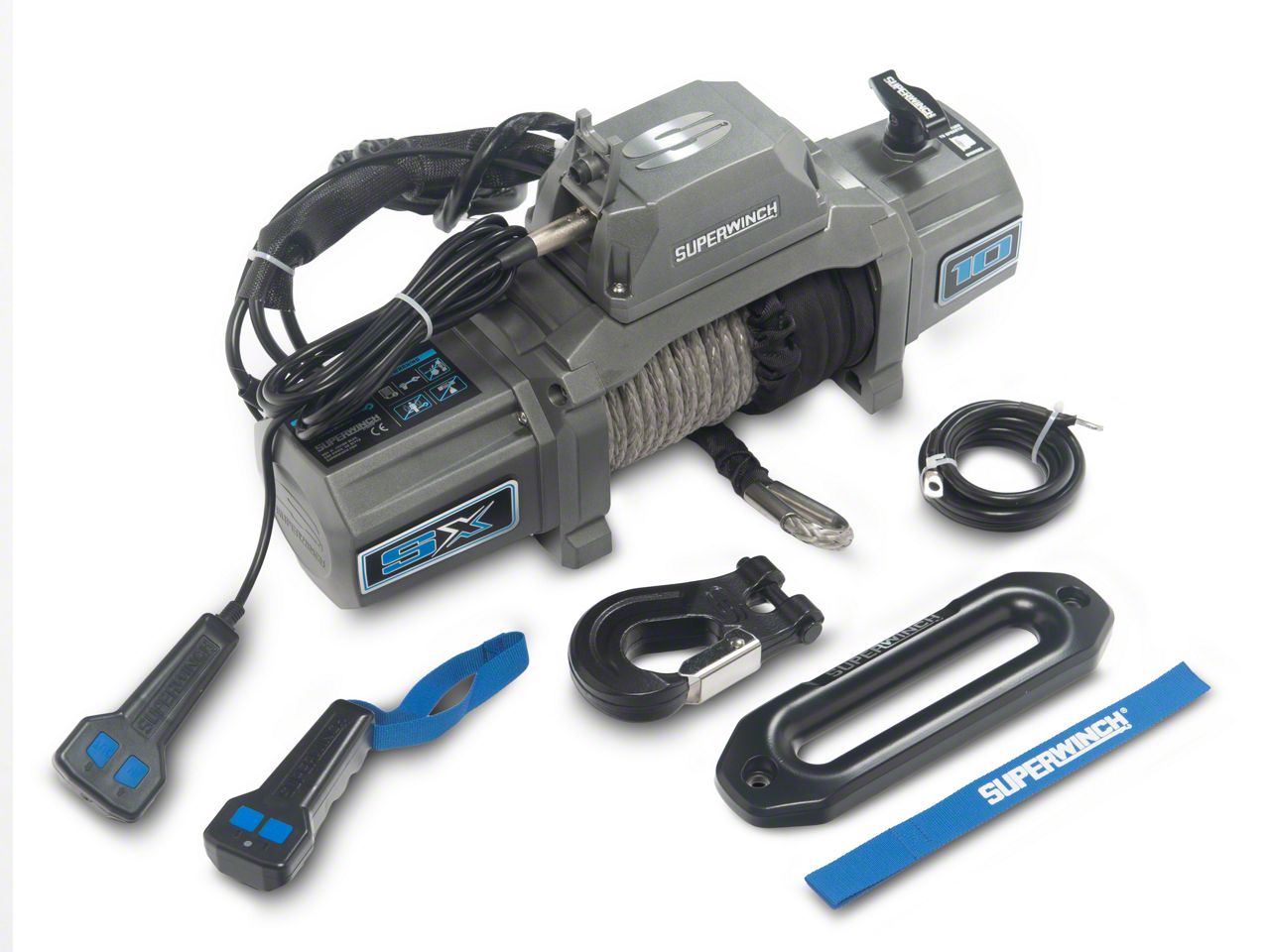 Description. Winch; Sx 10000Sr Winch; 10000 Lbs.; 12 Vdc; 3/8 In. X 80 Ft. Synthetic Rope; Handheld Remote Control; 5.5 Hp; Automatic Brake; 3-Stage Planetary; Aluminum Hawse Fairlead;