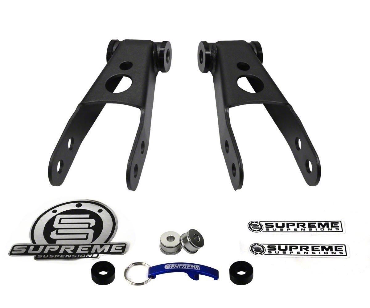 Quality Ride. Looking for the perfect rear drop shackles that will give your Silverado a quality ride? Look no further than the Supreme Suspensions 1 Inch Rear Drop Shackles. This cutting-edge product is guaranteed to improve the pinon angle on your Chevrolet, making for a smoother performance.
