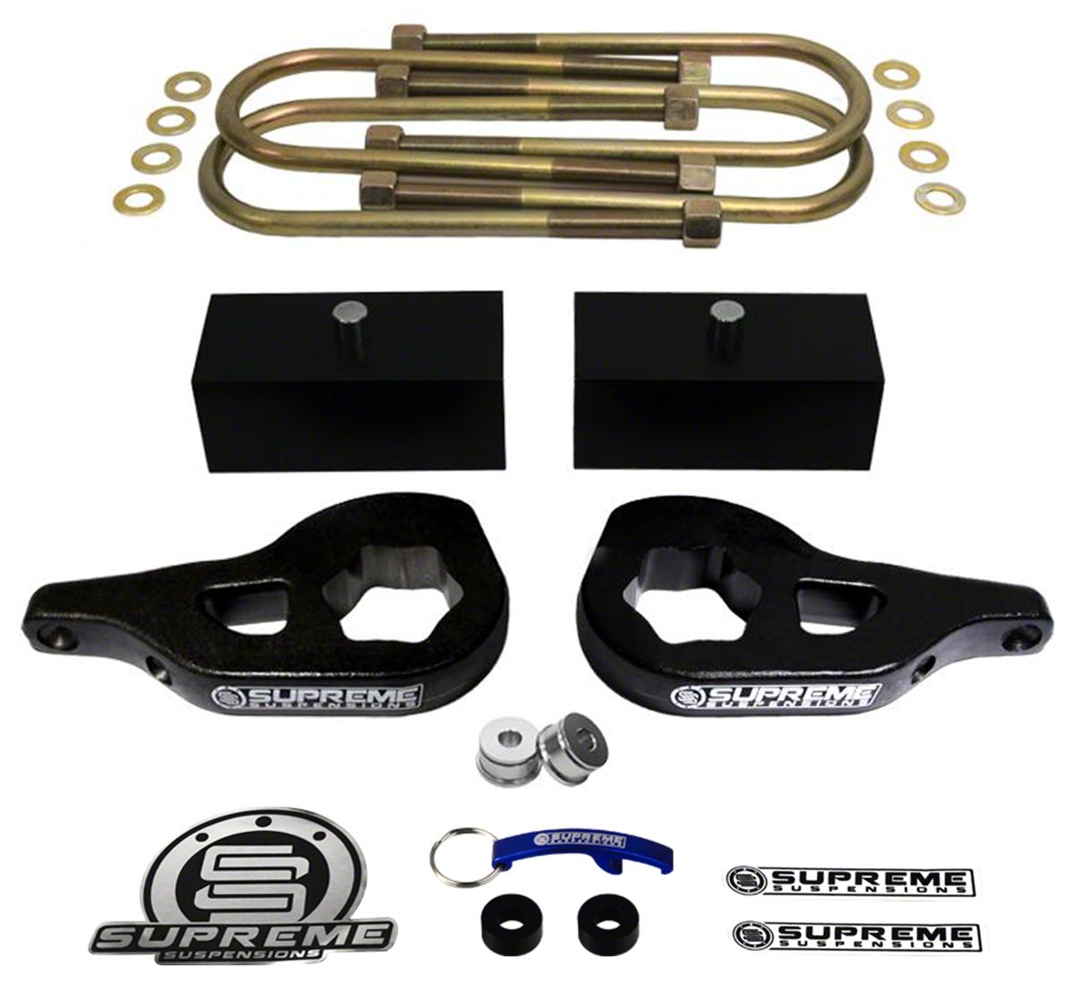Heavy Duty Torsion Keys and Lift Blocks. The components are made for heavy duty and won’t compress, crack, or break. The steel torsion keys and the rear billet aluminum lift blocks are guaranteed to last and come with zinc plated hardware to ensure long-lasting service.