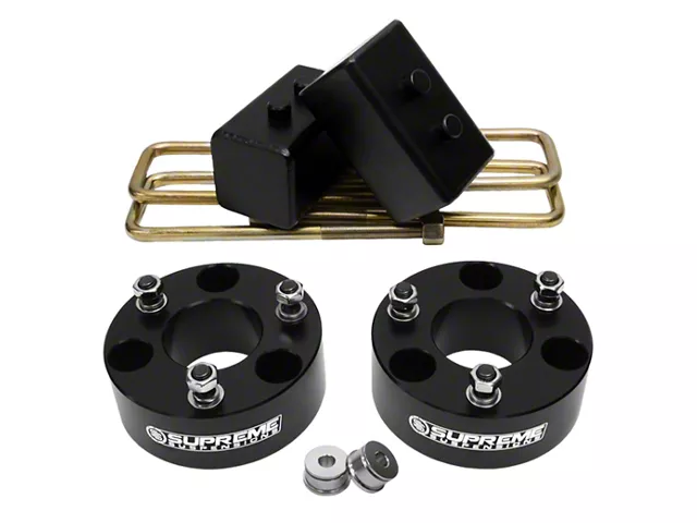 Provides Enhanced Off-Road Capability. Get the most out of your off-road experience on your F-150 with the Supreme Suspensions 2 in. Front / 1.5 in. Rear Pro Lift Kit. With the front lifted by 2 inches and the rear lifted by 1.5 inches, you are kept farther away from the ground—and potentially damaging elements. And since the suspension kit enables accommodation of larger wheels and tires, you will enjoy the greatly improved cornering and handling ability that your truck provides.