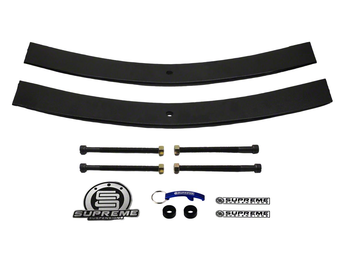 Excellent Precision and Accuracy. The Supreme Suspensions 2 Inch Rear Add-A-Leaf Spring Leveling Kit is designed to accurately lift your vehicle. Each leaf spring is constructed from carbon-steel for superior precision and accuracy. You'll be able to customize your car based on the lift and level you want.