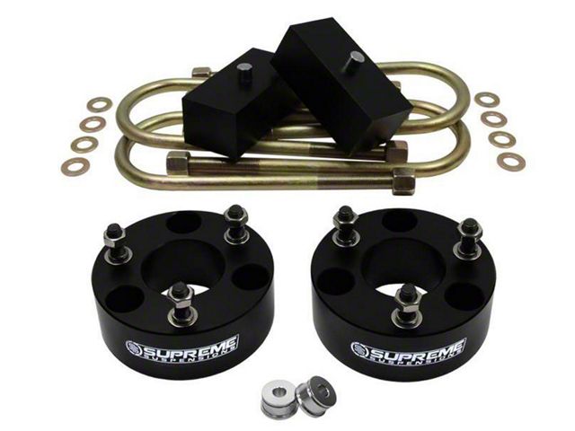 Provides Reliable Lift. The Supreme Suspensions 2.5 in. Front and 1 in. Rear Pro Billet Lift Kit is designed for heavy-duty and long-lasting service. It features precisely machined spacers and blocks made from aircraft grade aluminum for outstanding strength and durability. Whether you just want a lifted appearance or preparing for off-road use, this lift kit is an ideal choice.
