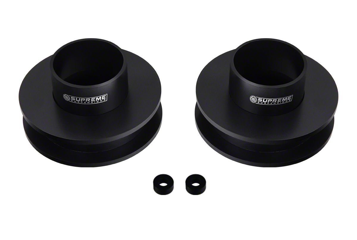 Application. The Supreme Suspensions 2.50 inch Pro Front Spring Spacer Leveling Kit fits 2002-2018 2WD RAM 1500s without Air Ride. Shipped in a black finish, the spacers are sold as a pair.