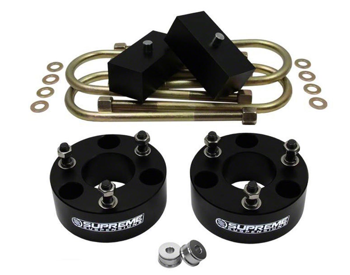 Effective Lift Solution. The Supreme Suspensions 3 in. Front and 1.5 in. Rear Pro Billet Lift Kit delivers an excellent lift solution and reliable performance at an affordable price. Designed and tested by experts, the Pro Billet Kit features precision-machined aluminum spacers and lift blocks that are extremely strong and durable. Additionally, they’re engineered to maintain the factory ride quality.