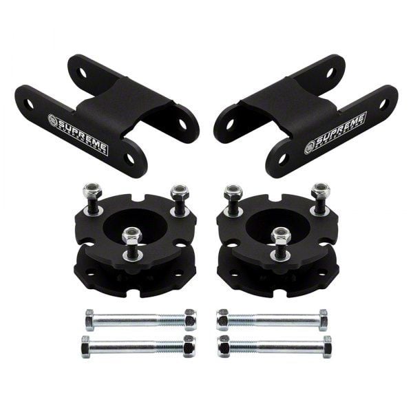 Looks and Height. Give your burly truck a more aggressive stance with the Supreme Suspensions 2-Inch Front/2-Inch Rear Pro Suspension Lift Kit. This suspension lift kit includes front and rear spacers that will give your ride a front lift height of 2 inches and a rear lift height of 2 inches. This will also allow you to run larger tires up to 32-inch to get you ready for an exceptional off-road experience.