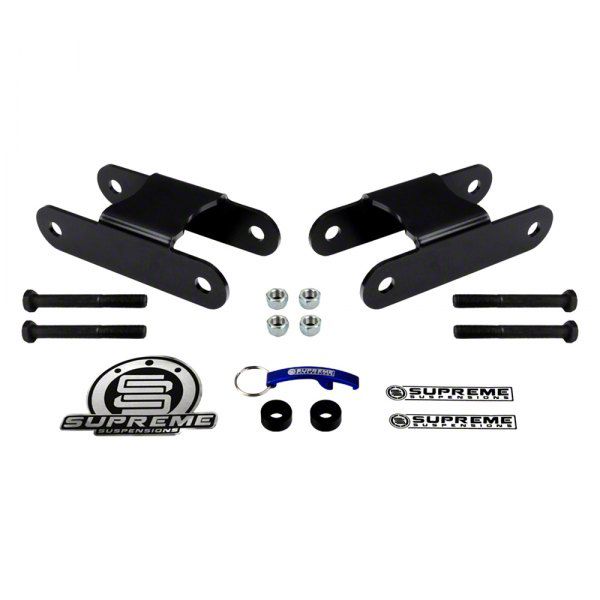 Performance. The Supreme Suspensions 2-Inch Rear Lift Shackles provide numerous benefits for off-road lovers and those who frequently drive on rough terrain. The lift shackles offer improved off-road capability by providing a greater lift height, which results in more ground clearance and enhanced off-road performance. This is particularly useful for those who plan to modify their vehicle for more intense off-roading.