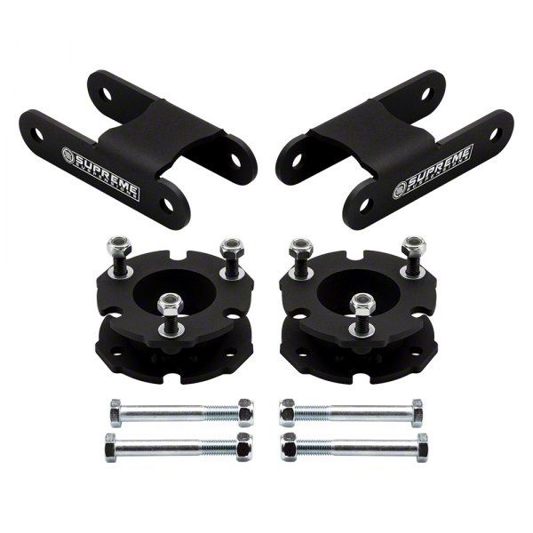 Hassle-Free Installation. The Supreme Suspensions 2.50-Inch Front / 2-Inch Rear Pro Suspension Lift Kit comes with hardware and detailed instructions, so you can get back on the road in no time.