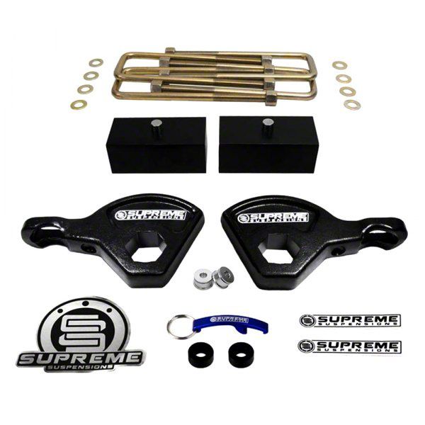 Supreme Pro lift kits are engineered to accurately lift and level your truck for a truly customized ride. Each front and rear lift component is CNC machined for precision and accuracy. Each then receives our special coating, protecting against rust and corrosion. With its high strength and durability, this lift will never compress or warp even under the most extensive load.