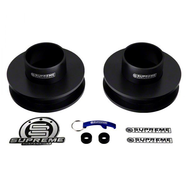Supreme Pro Spring Spacer kits are engineered to accurately lift and level your 2WD truck for a truly customized ride. Each lift spring spacer is machined from solid Carbon-Steel for precision and accuracy. Each unit is then coated to prevent rust and corrosion extending the life of your kit. With its high strength and durability, this drop will never compress or warp even under the most extensive load. IMPORTANT: Will NOT Fit Front Solid Axle Models. Does Not Fit Extended Cab Models.