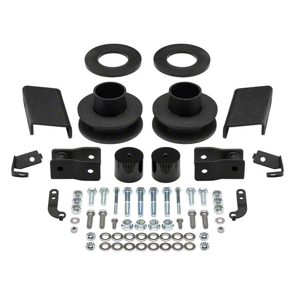 Enhanced Stability. Improve the stance and road clearance of your F-350 Super Duty with the Supreme Suspensions 2.50-Inch Pro Front Spring Spacer Leveling Kit. With a 2.50-inch lift, the leveling kit enhances the ground clearance of your vehicle, enabling more comfortable navigation over obstacles during off-road ventures. It also provides a more balanced vehicle profile by eliminating the factory rake.