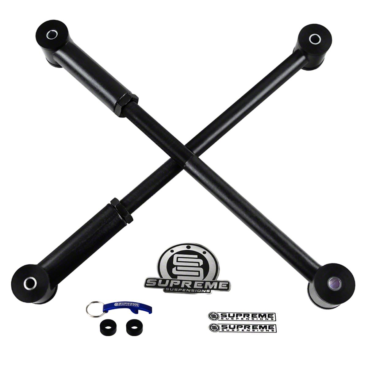 Only Positive Vibes. Supreme Suspension control arms accommodate up to 8-inches of lift while eliminating unwanted vibration and death wobble that happens from a worn and overused suspension. The arms are constructed from thick-walled solid carbon steel tubing construction with superior corrosion resistance and include polyurethane brushings that provide that extra control and comfort.