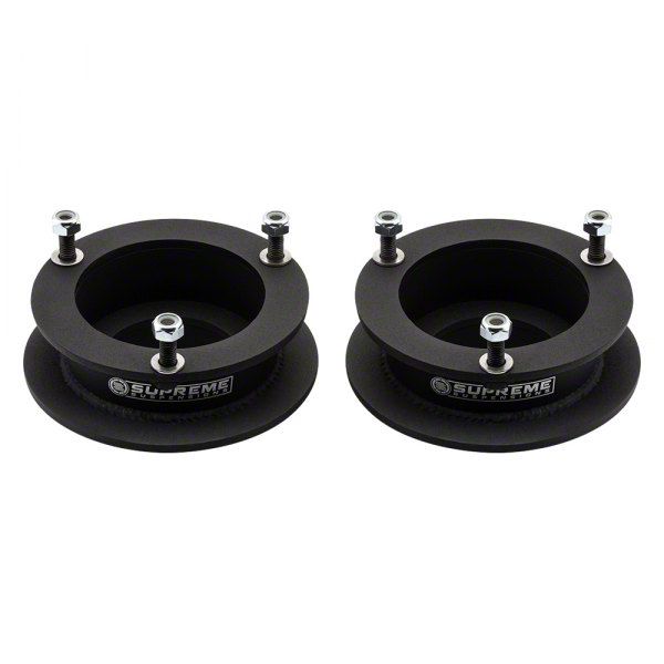 Reliable. Greater ground clearance is one of the key benefits of using Supreme Suspensions' 1.50-Inch Pro Front Spring Spacer Leveling Kit. You can navigate tougher terrain due to the extra clearance without having to be concerned about the foundation of your vehicle getting damaged. Also, it makes your vehicle appear intimidating and aggressive, especially when paired with bigger tires.