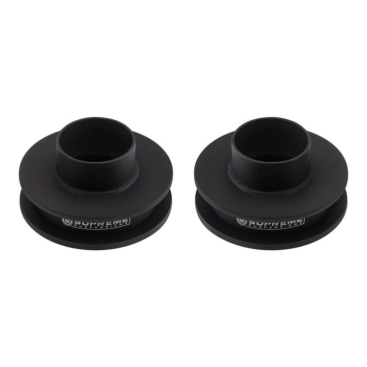 Achieve a Level Stance with Supreme Suspensions Front Spring Spacer Kit. This leveling kit is designed to raise the front end by 2 inches, providing a balanced, leveled appearance. Ideal for RAM 3500 owners who want improved ground clearance, it’s a practical solution for those seeking enhanced vehicle aesthetics and functionality without a full lift.