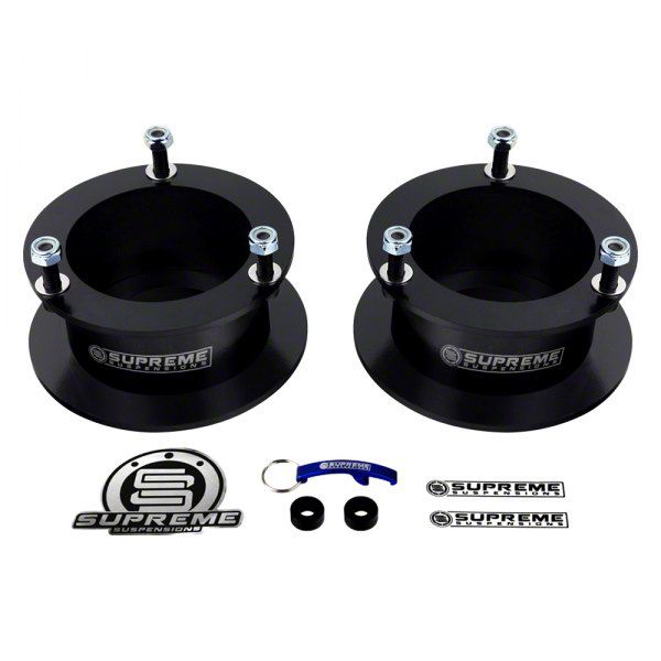 Power. The 3-Inch Pro Front Spring Spacer Leveling Kit from Supreme Suspensions also increases your vehicle's ability to haul and tow. Your vehicle's enhanced front height evens up the weight distribution, enabling you to pull and transport heavier loads.