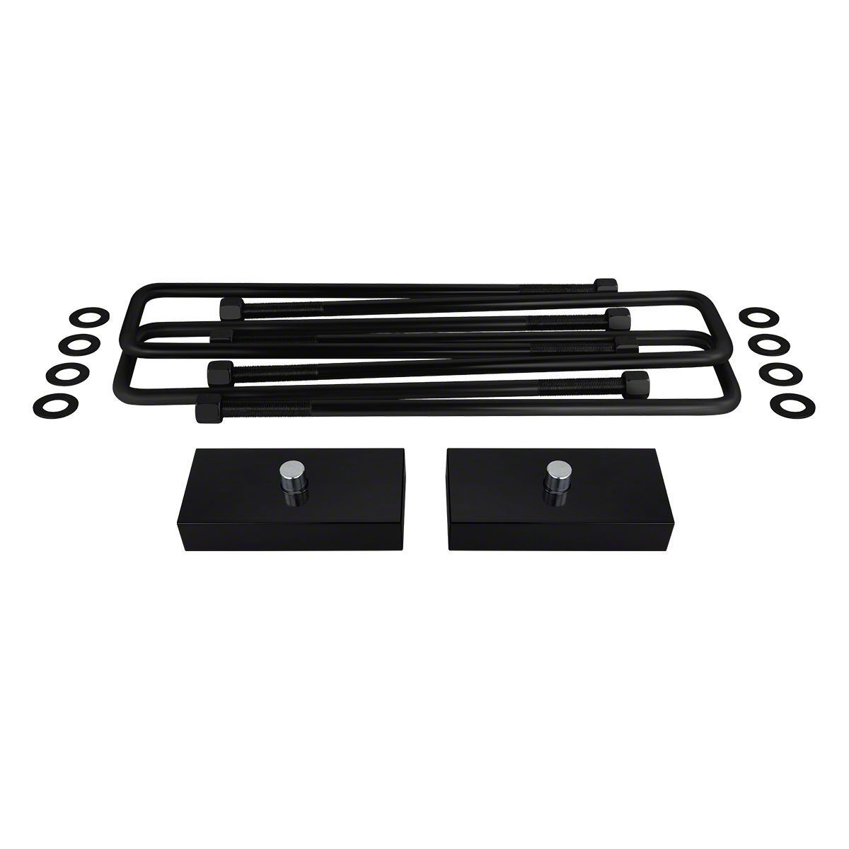 Other Features. This kit includes not only the lift blocks but also four U-bolts for a secure installation. The U-bolts are designed to complement the lift blocks, ensuring a safe and stable attachment to the vehicle’s suspension system.