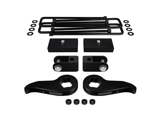 Adjustable Lift and Enhanced Performance. The Supreme Suspensions 1 to 3-Inch Front / 1-Inch Rear Pro Suspension Lift Kit with Shock Extenders offers a precise and adjustable lift to improve your vehicle's ride height while maintaining ride quality. This kit enhances ground clearance, making it ideal for off-road enthusiasts or drivers who need a more commanding stance.