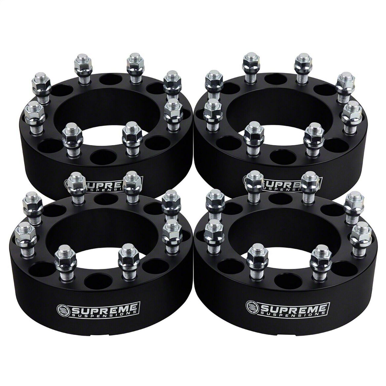 Supreme Suspensions Pro-Billet Series Wheel Spacers CNC Machined out of T6 Aircraft Billet Aluminum and precision engineered to widen your tire track by 1.5inches on each side and change your vehicle's 8 x 6.5 in. bolt pattern to 8 x 180mm, improving the look of your vehicle and accommodating wider custom rims and tires. With the added traction, you will be able to put more power to the ground for greater acceleration. Each of our products are precision machined using only the latest in metal fabrication technology and anodized during production to protect against the elements, ensuring a lifetime of dependability under even the most extreme riding conditions.