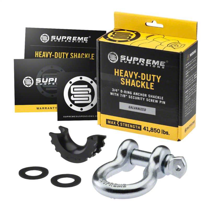 Perfect for Recovery Operations. This Supreme Suspensions 3/4-Inch D-Ring Shackle will add a reliable recovery point to any vehicle equipped with a D-Ring mount. D-Ring shackles are a great accessory, especially if your vehicle sees a lot of use out on the trail or at the work site. The included Isolator will prevent metal on metal contact to help minimize noise.