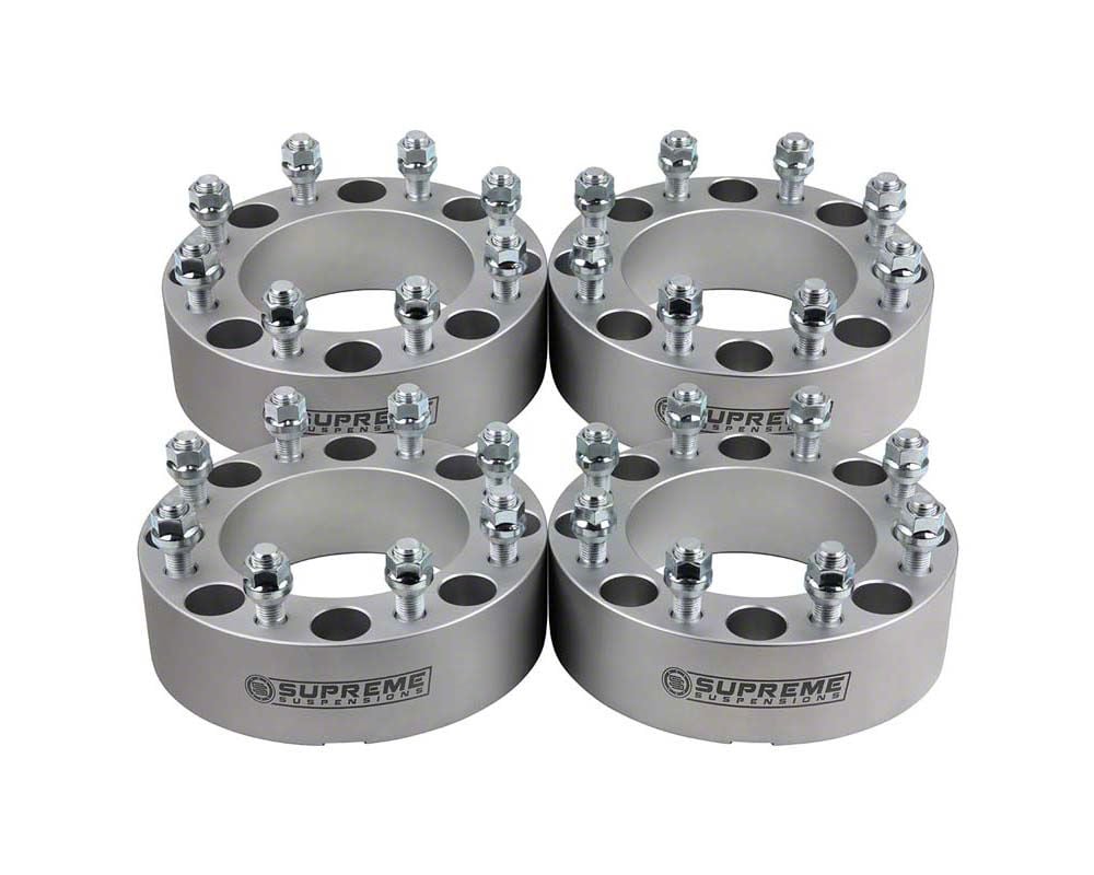 Supreme Suspensions Pro-Billet Series Wheel Spacers CNC Machined out of T6 Aircraft Billet Aluminum and precision engineered to widen your tire track by 1.5 inches on each side and change your vehicle's 8 x 6.5" bolt pattern to 8 x 180mm, improving the look of your vehicle and accommodating wider custom rims and tires. With the added traction, you will be able to put more power to the ground for greater acceleration. Each of our products are precision machined using only the latest in metal fabrication technology and anodized during production to protect against the elements, ensuring a lifetime of dependability under even the most extreme riding conditions.
