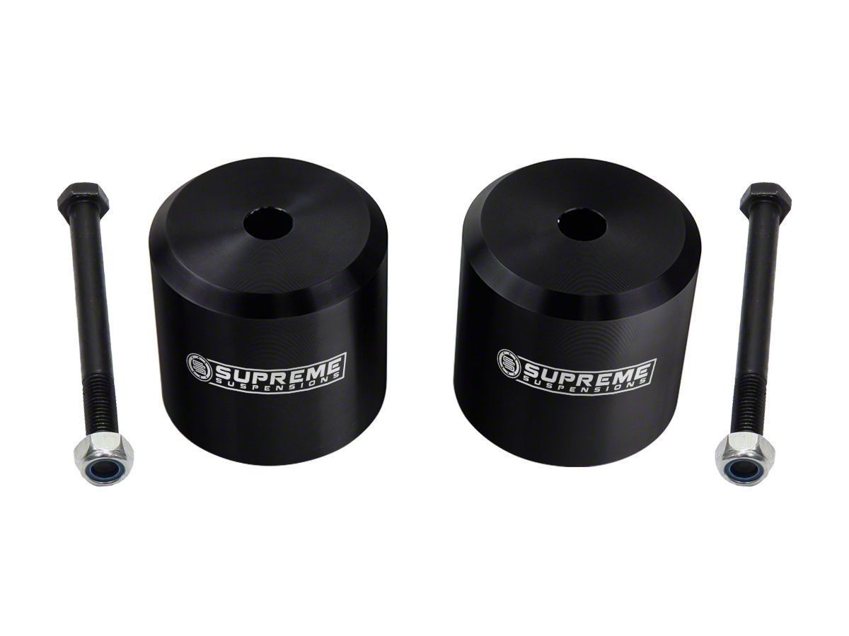 Dynamic Leveled-Off Stance. Give your F-250 truck a dynamic new look by leveling its front with the rear using the Supreme Suspensions 2.50-Inch Pro Front Spring Spacer Leveling Kit. This leveling kit raises your front by 2.50 inches equalizing it to your rear. Aside from improving your truck’s look, the kit also allows you to mount larger tires, adding to your truck's overall aggressive styling.