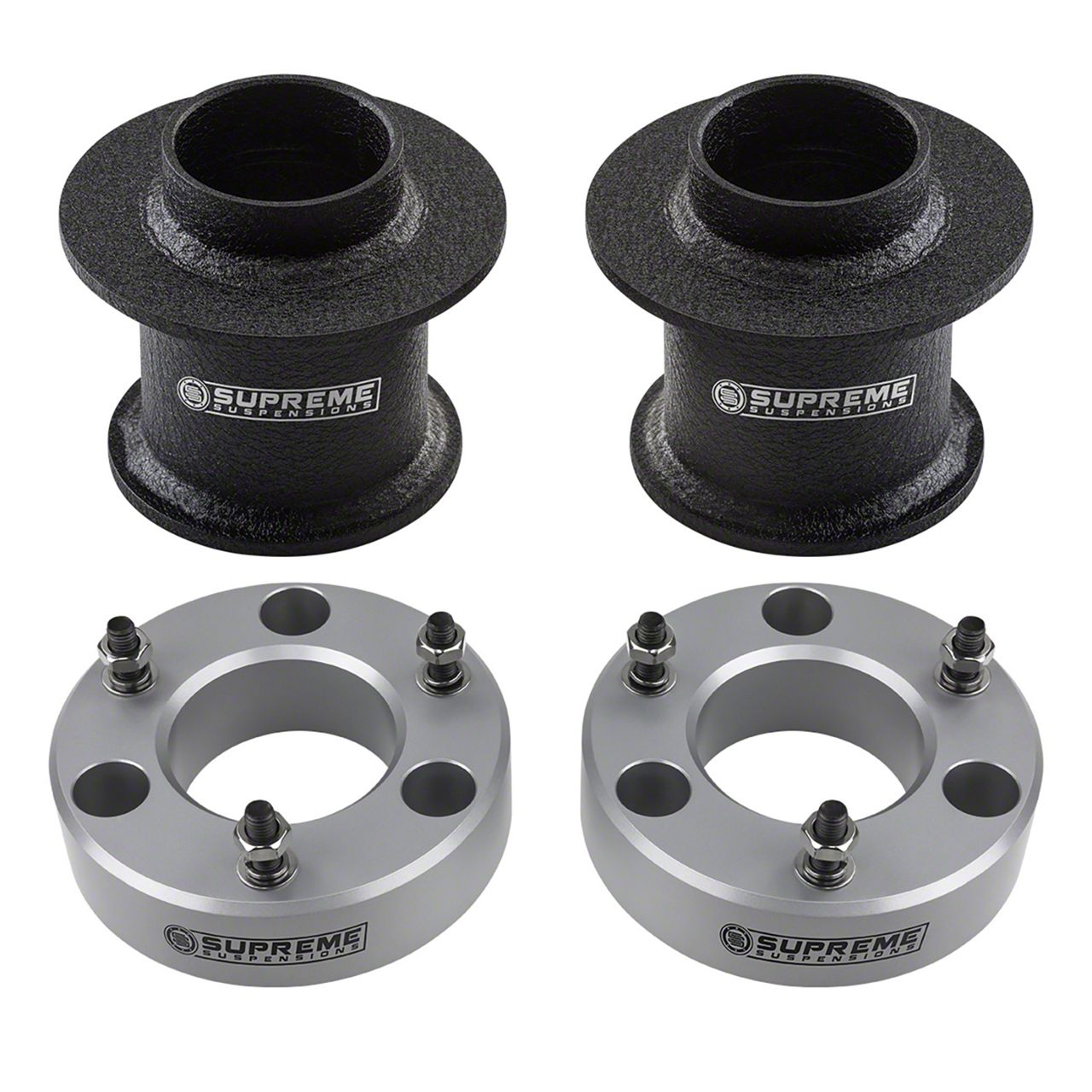Supreme Pro lift kits are engineered to accurately lift and level your truck for a truly customized ride. Each front lift component is Machined from solit billet aluminum blocks. The rear lift spacers are Lazer and Water Jet cut from high strength steel m