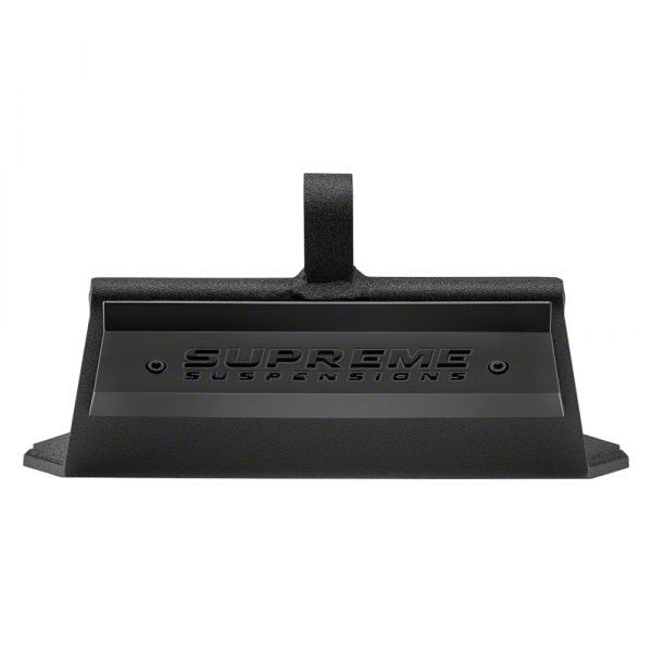 Multifunction. Crafted for a universal fit, this Supreme Suspensions HD Receiver Hitch Skid Plate is a multi-function part and comes in a matte black finish. Sized 2 inches, it is crafted from 1/4-inch steel with 1-inch shackle anchor points and interchangeable polyurethane pads.