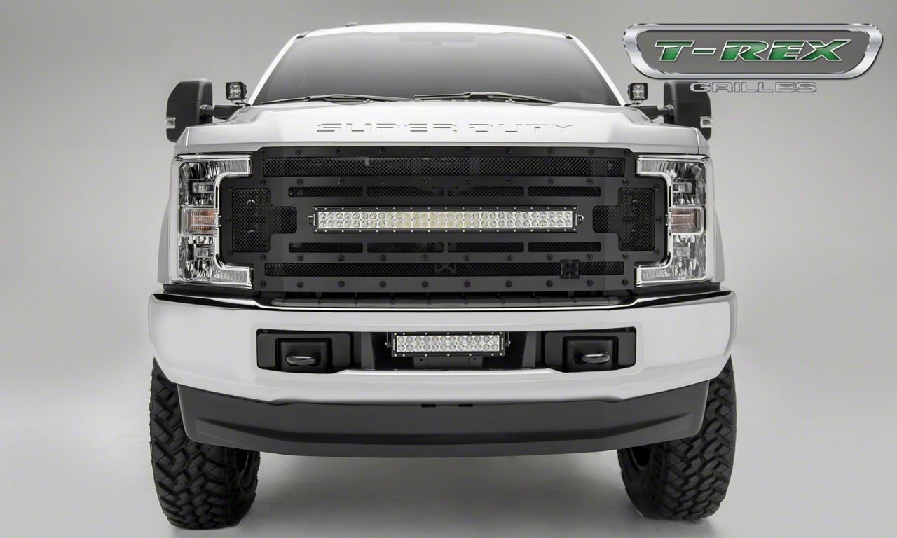 Reinforced Style, Protection, and Illumination. Equip your Super Duty with an additional aggressive armor for maximum off-road protection. Install the black T-REX Stealth Torch Series Upper Replacement Grille with 30-Inch LED Light Bar to protect your truck’s most exposed components from trail debris, while powerfully illuminating the path ahead. It comes in a fierce wire mesh configuration that is CNC-laser cut to seamlessly fit your Super Duty’s contours.