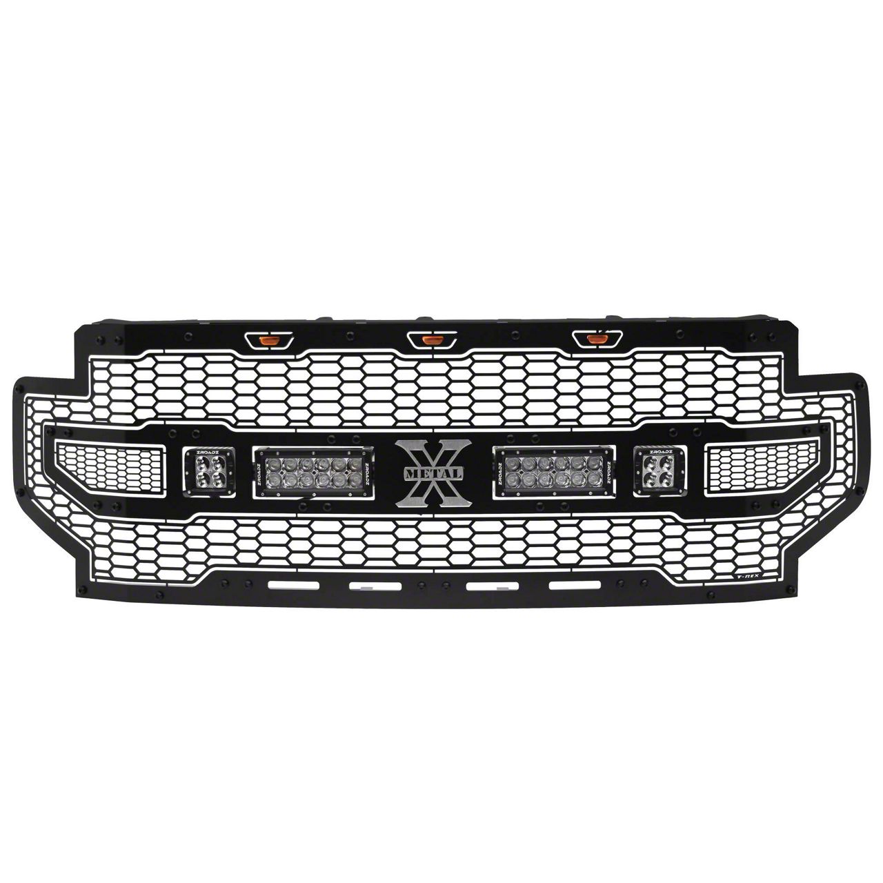 Honeycomb Pattern. Upgrade your vehicle's front end with the T-REX Grilles Stealth Laser Torch Series Upper Replacement Grille with LED Lights. Designed for all 2020-2022 Ford F-350 Super Duty Models, this grille boasts three OEM stock amber running lights, two 6-inch LED bars, and 2 3-inch amber pod lights, significantly improving your vehicle's visibility. The grille features a stylish honeycomb pattern and removable X-Metal black studs with the X-Metal logo.