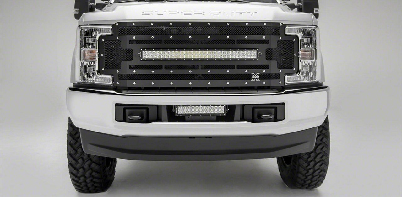 Application. The T-REX Grilles Torch Series Upper Replacement Grille with 30-Inch LED Light Bar; Black fits 2017-2019 F-250 Super Duty models without Forward Facing Camera.