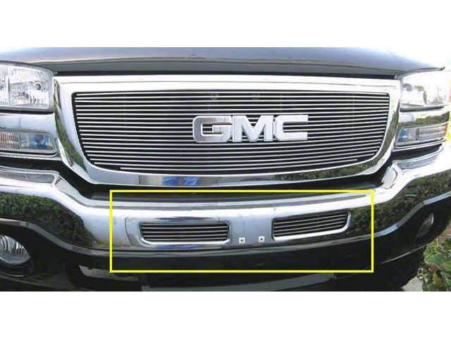 Application. The Sierra 1500 Billet Series Lower Bumper Grille Insert installs directly over the smaller front grilles of the 2003-2006 models of the GMC Sierra 1500. This excludes the Denali variations of these vehicles.