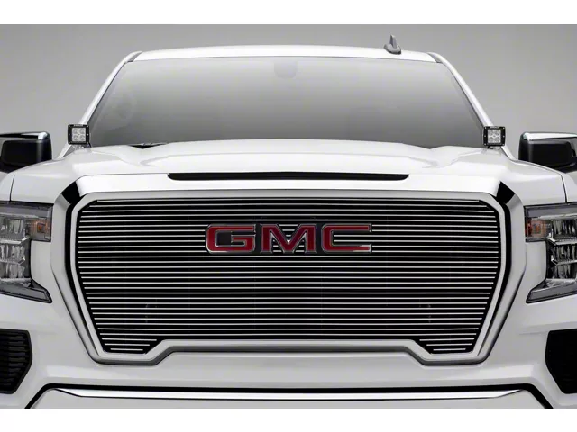 Sturdy Sierra Styling. This T-REX Grilles Billet Series Upper Grille Insert with Logo Plate; Polished will enhance the look of your Sierra and raise its off-road durability. It enhances the visual appeal of your car and safeguards your radiator and hood sections from small detritus that could rupture or obstruct their general functioning. It features a bold lettering emblem for GMC and a lightly polished surface.