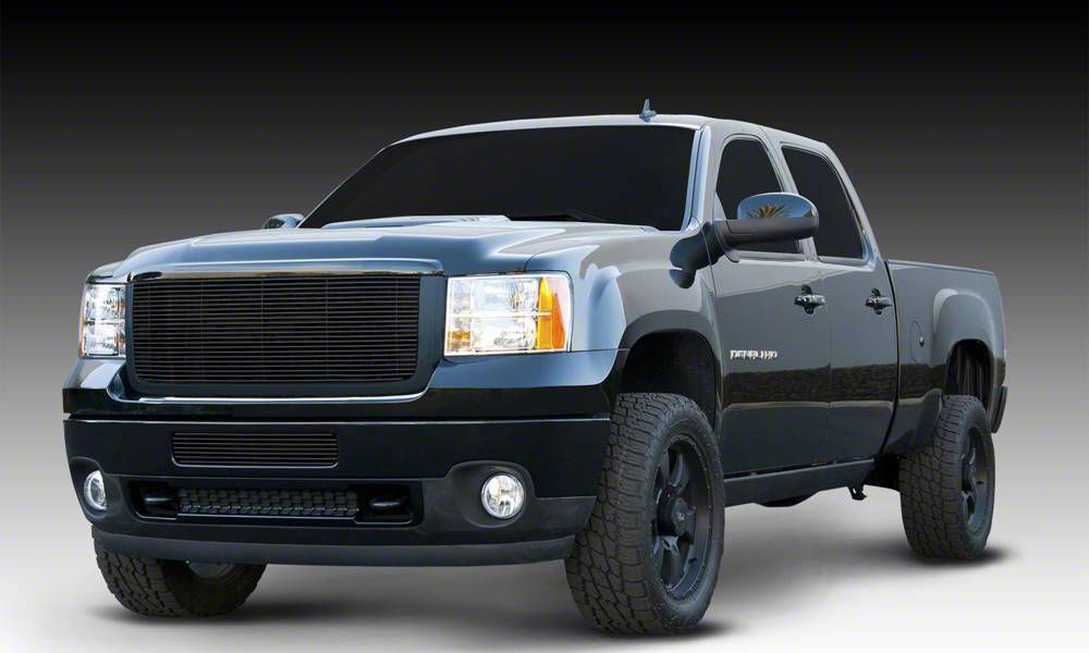 Sleek Black Grille Insert. Transform the front fascia of your Sierra 3500 HD (excluding Denali models) with the T-REX Grilles Billet Series Upper Grille Insert. This premium upper grille insert is meticulously crafted from high-quality T-304 stainless steel, known for its durability and resistance to corrosion.