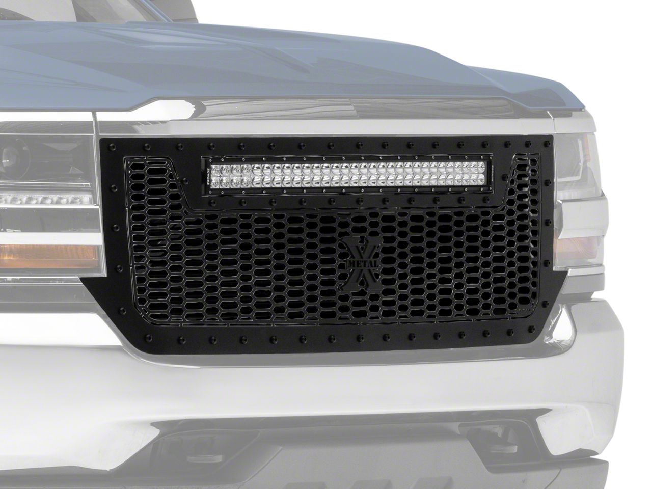 Stealthy Style. To give your 2016-2018 Chevrolet Silverado 1500 the superior upgrade it deserves, simply replace its boring stock grille with T-REX's Black Stealth Laser Torch Series Upper Replacement Grille with 30-inch LED Light Bar. This impressive grille features an unbeatably stealthy and aggressive style that manages to remain understated with a studded perimeter 12 gauge frame and exclusive X-metal black studs for a violent look. Built to be as tough as it looks, this hardcore grille also offers ideal front end protection for your toughest adventures.