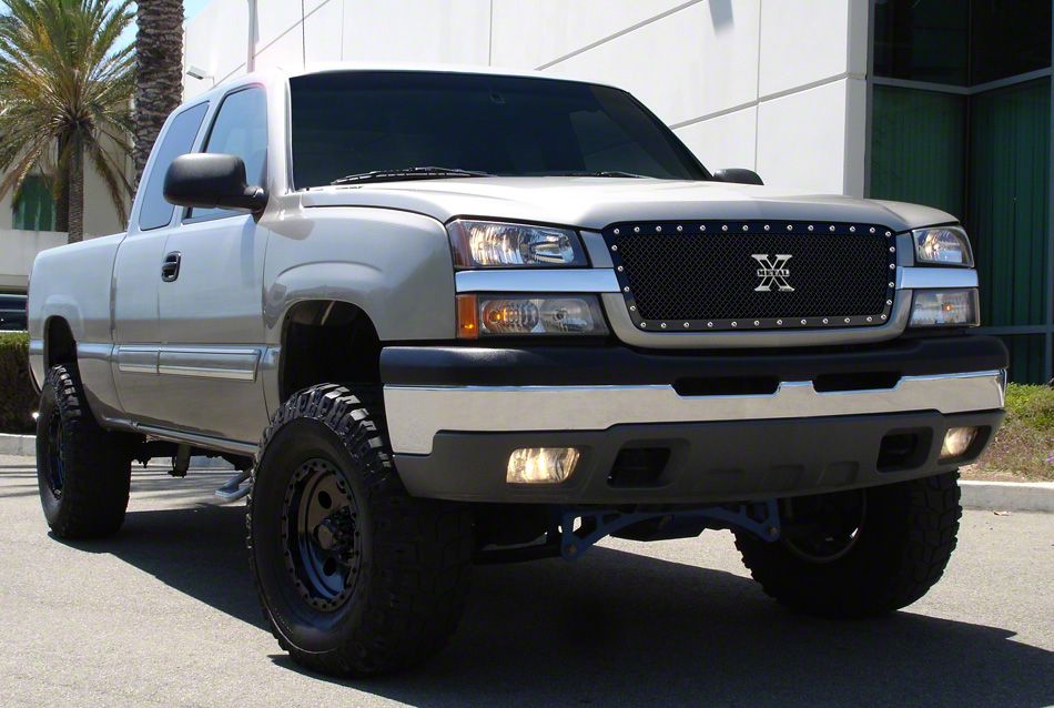 Impressive Insert. Thanks to T-REX's Black X-Metal Series Upper Grille Insert, you'll never have to worry about your 2003-2005 Chevrolet Silverado 1500 getting shown up again. A high-end option that improves your rig's functionality as well as its appearance, the insert easily guards against potential front end damage to keep your truck looking its best regardless of the challenges you face on the trail ahead. Designed to boost your rig's aggressive styling, the grille insert features a heavy-duty formed woven wire mesh build along with exclusive black X-metal studs and a heavy-duty 12-gauge frame that add an unmistakably hardcore yet stealthy accent to your truck's impressive overall appearance.