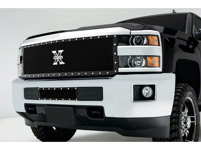 Trail-Tough Design. Let everybody know that you're ready for anything the trail throws at you with the Silverado 3500 X-Metal Series Upper Replacement Grille. With the X Metal logo standing front and center, this grille features a powerful wire mesh design that looks the part and guards against impacts. The main grille is accented by an aggressive black border that has a trail-tough stud pattern. Achieve a unique and aggressive look while gaining enhanced protection when compared to your stock grille.